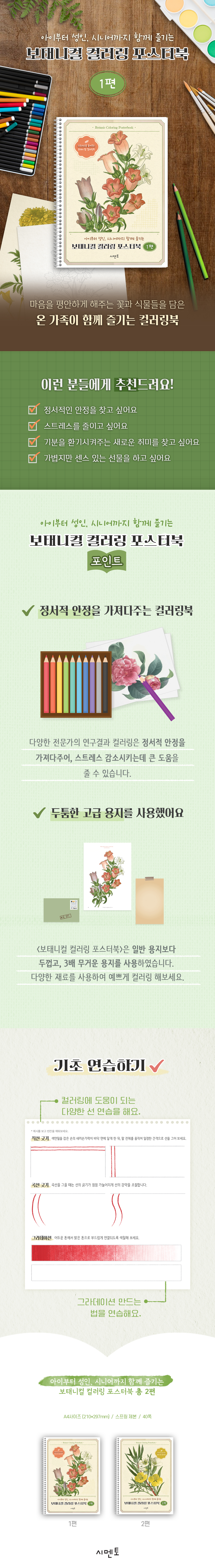 <아이부터 성인, 시니어까지 함께 즐기는 보태니컬 컬러링 포스터북>은 정서적인 안정을 가져다주는 보태니컬 컬러링북 시리즈입니다.
