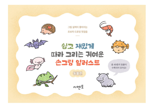 <쉽고 재밌게 따라 그리는, 귀여운 손그림 일러스트: 동물 - 그림 실력이 좋아지는 초보자 드로잉 첫걸음은 초보자도 따라 하기 쉬운 도안으로 그림 초보, 아이 등 그림이 익숙하지 않은 사람도 혼자서도 그림을 따라 그릴 수 있어, 그림 그리기에 자신감을 붙이기 좋은 책입니다.