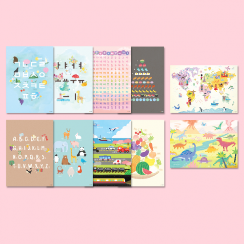 한글 자음, 한글 모음, 한글 조합, 숫자, 영어, 동물, 탈것, 과일·채소, 세계지도, 공룡 등 다양한 디자인의 학습벽보를 선택할 수 있을 뿐만 아니라, 아이와 즐겁게 학습할 수 있는 스마트 기기 학습지가 제공된다. 특히 한글 과목에 대한 체계적인 교육 시스템을 개발하여, 한글의 결합 원리부터 어휘력 증진까지 완벽한 한글 떼기가 가능하다. 즉, 벽보를 구입하면 약 100~1000장의 스마트기기 학습지가 함께 제공되는 것이다.
